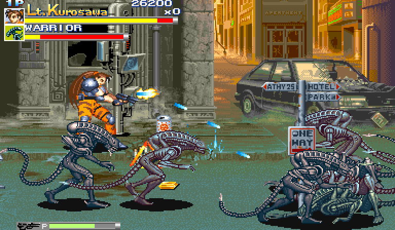 A hazai kínálatban sajnos nehezen fellelhető Alien vs. Predator című játék a Capcom által fejlesztett, CPS-2 játéktermi gépre lett fejlesztve, ami az 1994-ben még nagyon is rendben lévő CGA-felbontást meghaladó 384X224 pixelarányban, és 12 bites RGB színekben ((24)3 = 163 = 4096) pompázott. A látvány tehát garantáltan a képernyőhöz szegezte a játékra éhes fiatalokat, akiket ráadásul pazar zene és vagány hang, valamint nagyon erőszakos és addiktív játékmenet is várt. Csak azért, hogy érezzük a hardveres háttér komolyságát: a hazai közönség által is jól is mert Super Street Fighter II ugyanilyen masinán pörgött (sőt, 2004 környékén még egy Hyper SFII is kijött, ki gondolta volna!), vagyis elvárhattuk, hogy egy igazán minőségi beat ’em up játékot kapjunk a Capcom jóvoltából. Nem kellett csalódnunk.